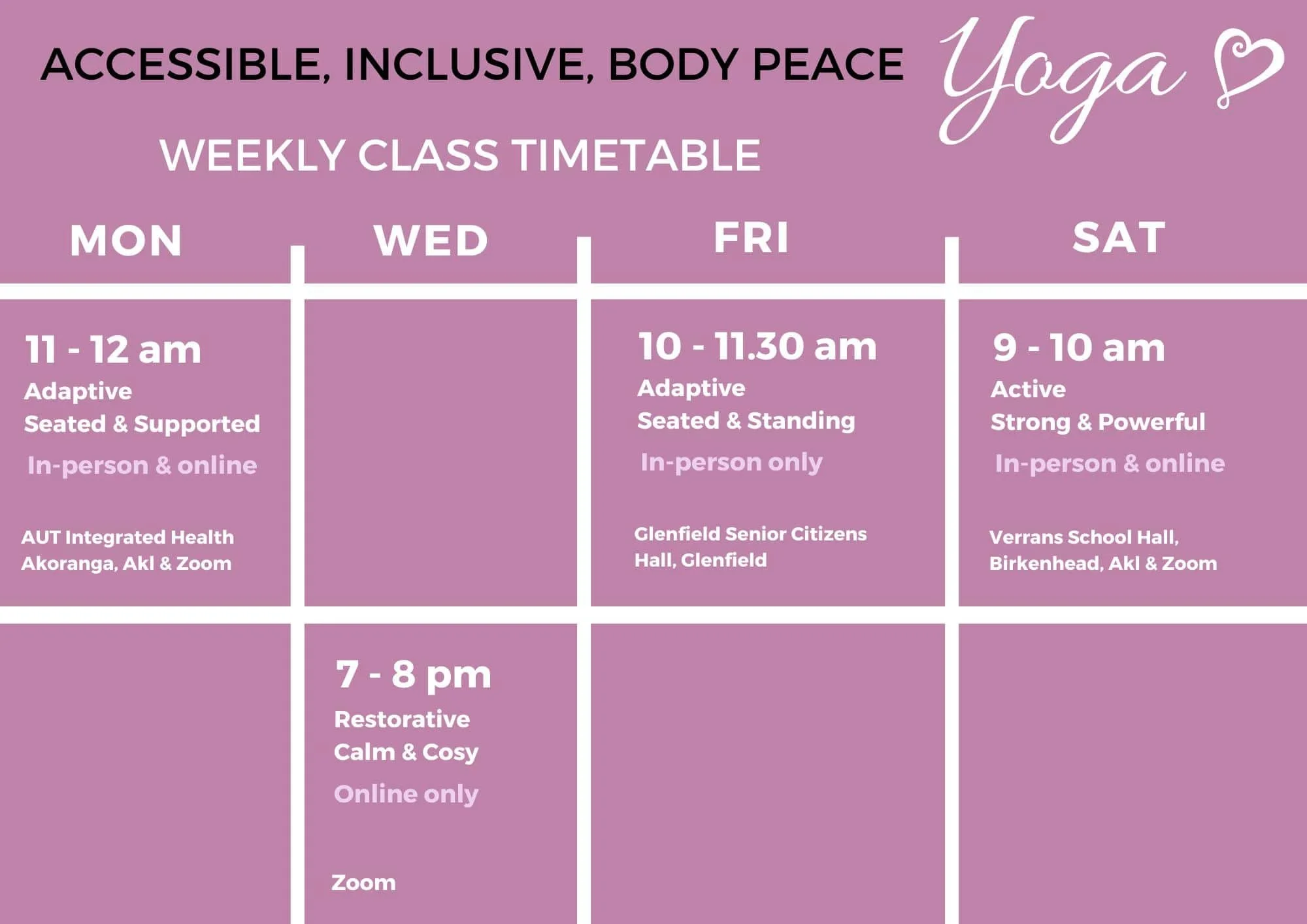 Inclusive, body-affirming for ALL body types, shapes, sizes, injuries, disabilities, ages & stages catered for!