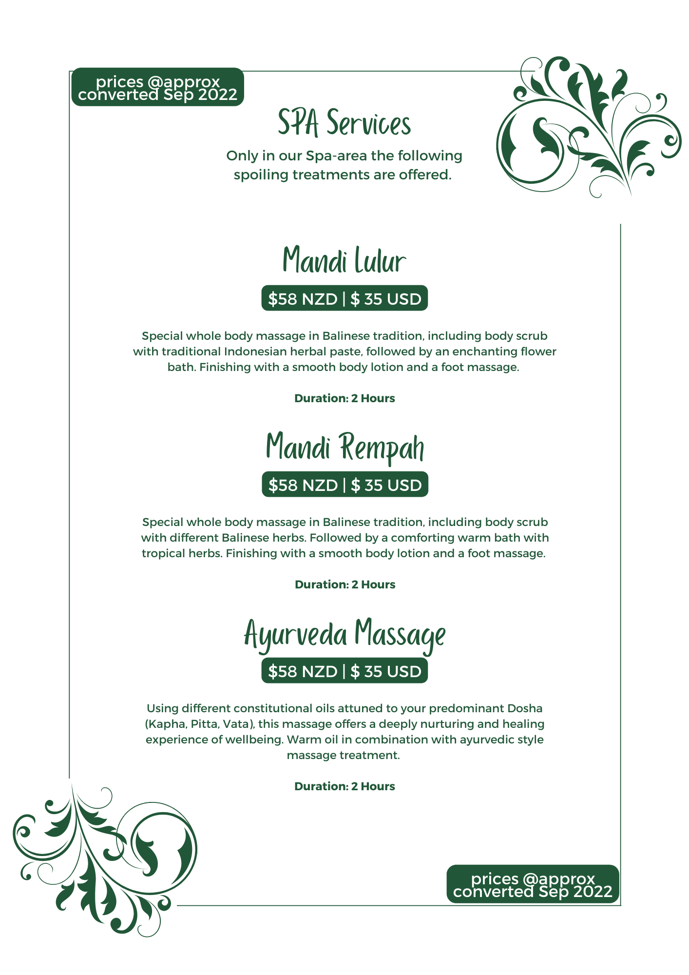 Yep you are reading this right…You can choose, as an optional add-on, from the ONSITE resort’s yummy SPA Services - whaaa!!