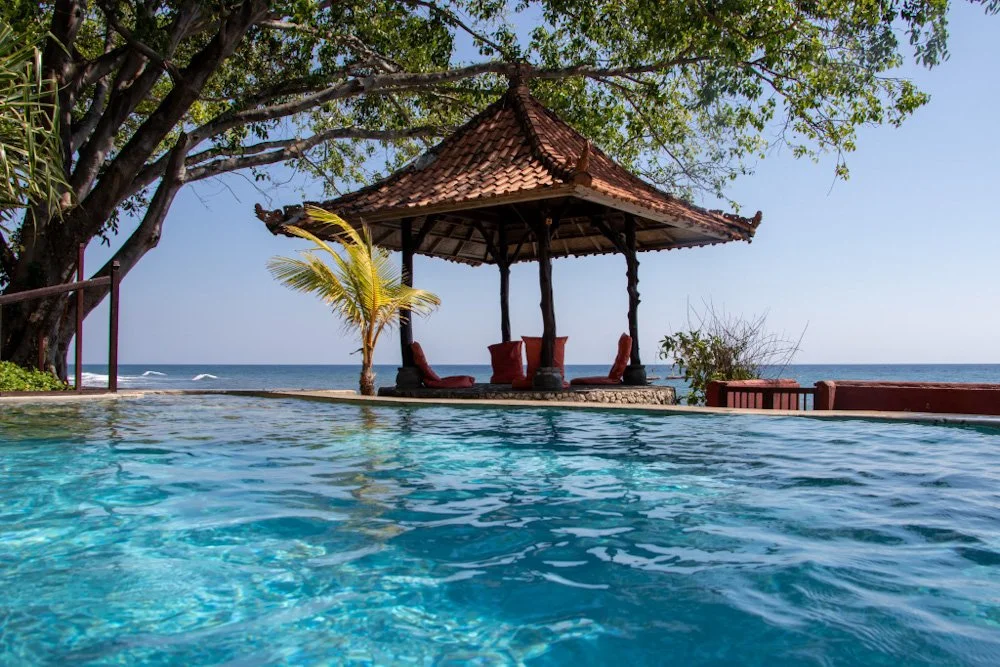 Set on the peaceful, less-traveled northern coast of Bali, you’ll stay in a beachfront lush resort.